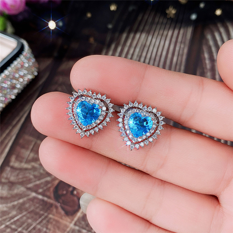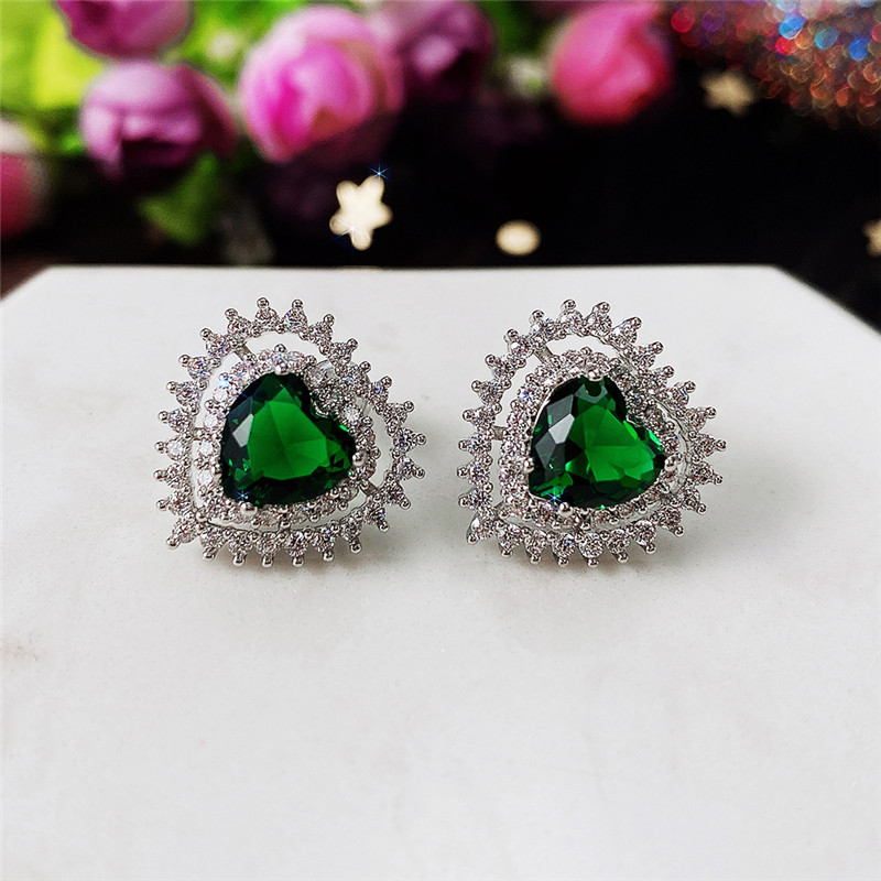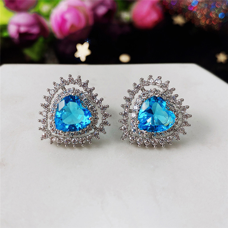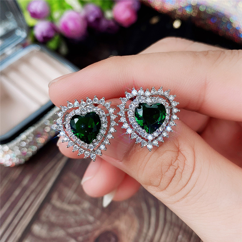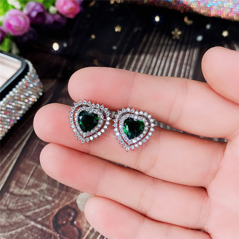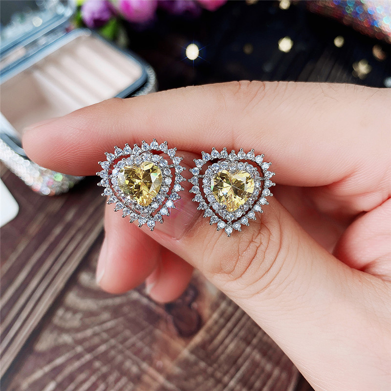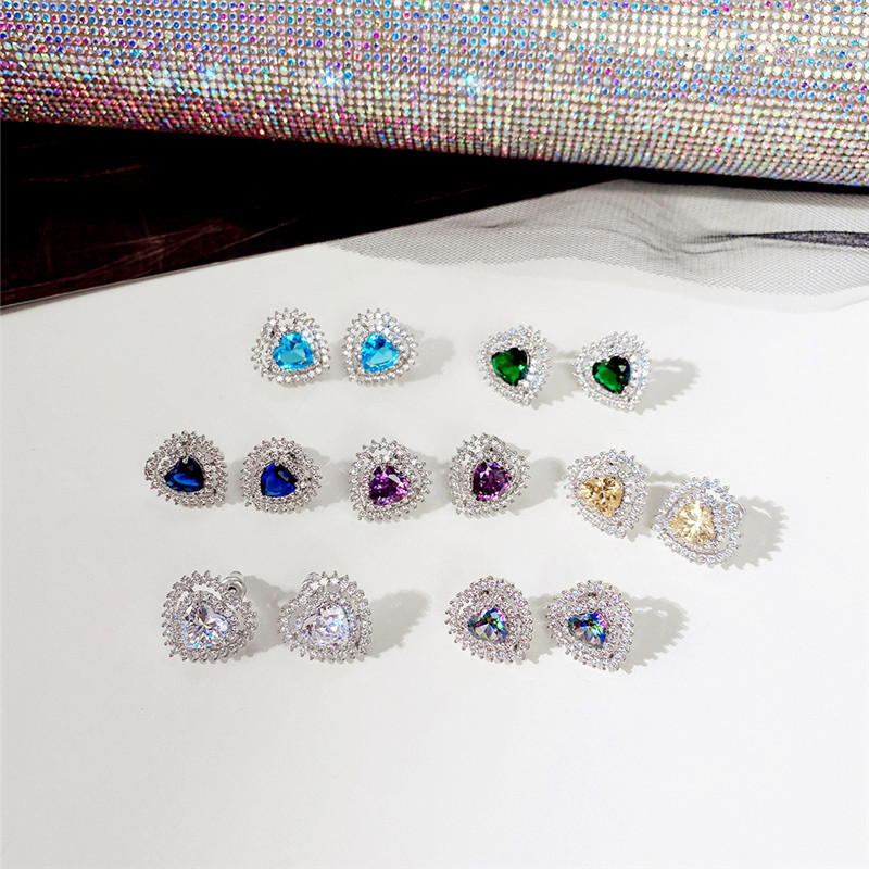 Personalized girls peach heart earrings earrings forest style all-match zircon heart internet celebrity same style earrings wholesale