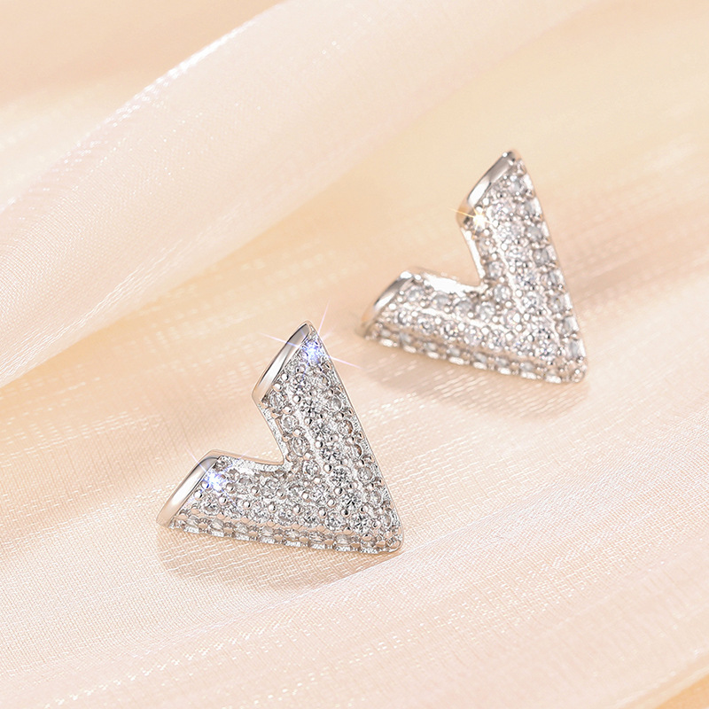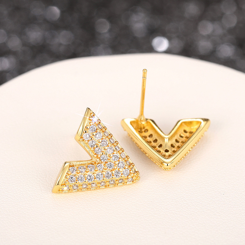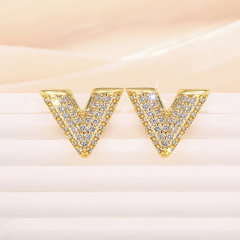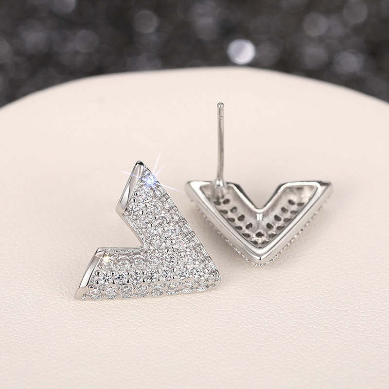 Personalized high-end temperament fashion earrings English letter V-shaped earrings micro-inlaid earrings for women