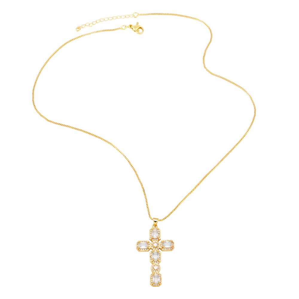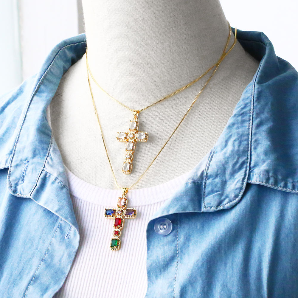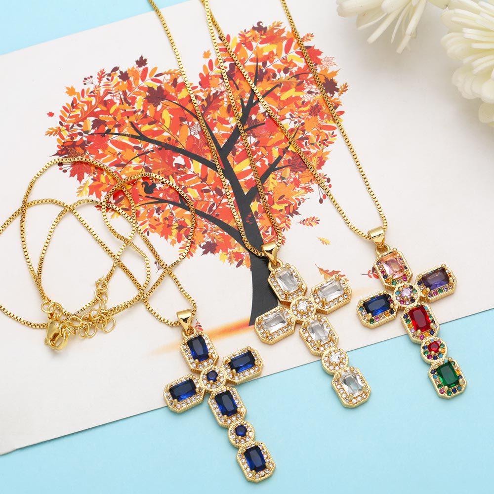 Personalized hip-hop cross necklace female European and American fashion temperament trend necklace colorful zircon necklace nkb775