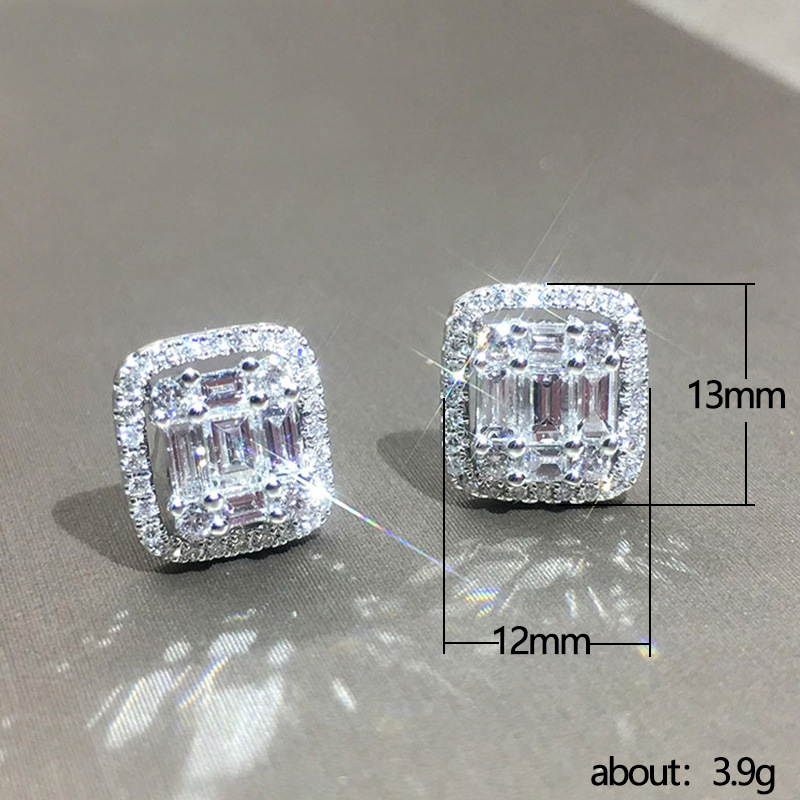 Personalized T square zircon earrings fashionable and popular women's earrings light luxury platinum diamond earrings ear jewelry