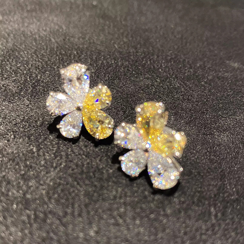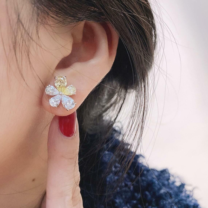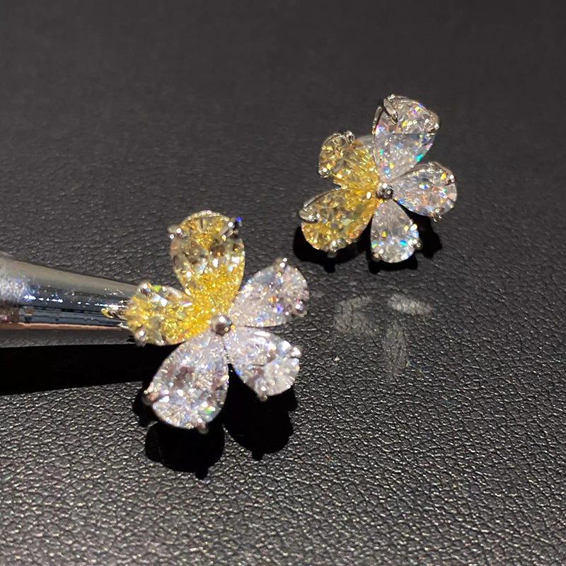 Personalized yellow and white flower earrings, daily versatile Korean light luxury earrings, teardrop-shaped two-color floral earrings