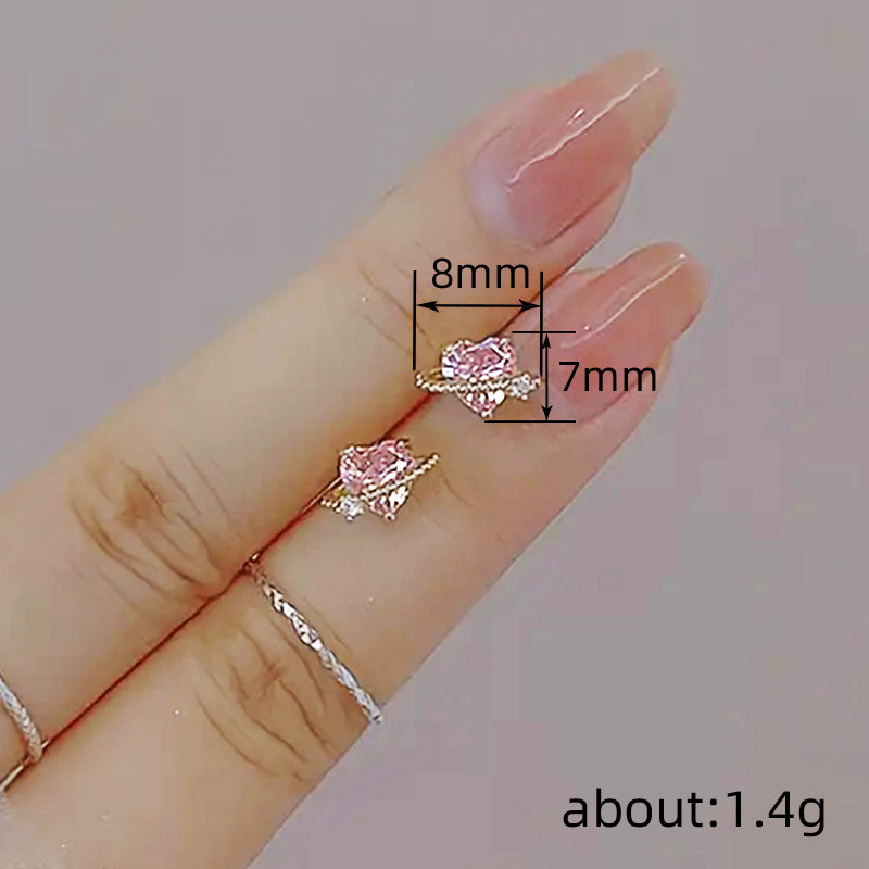 Pink heart new earrings girly heart super flash ear bone stud earrings Cupid versatile heart-shaped earrings