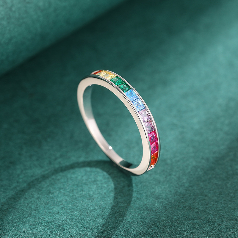 Pinxixi simple colorful zircon ring female fashion personality ring minimalist fashionable creative design