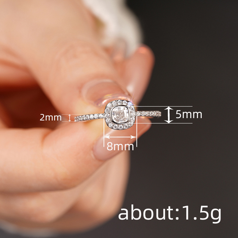 Hot selling new princess square ring European and American hot style inlaid zircon women's jewelry engagement proposal ring