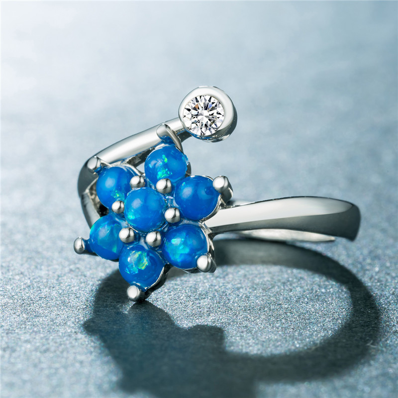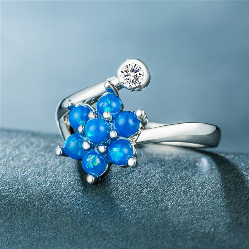 Popular accessories creative flower artificial opal opal ring micro-inlaid rhinestone opal jewelry