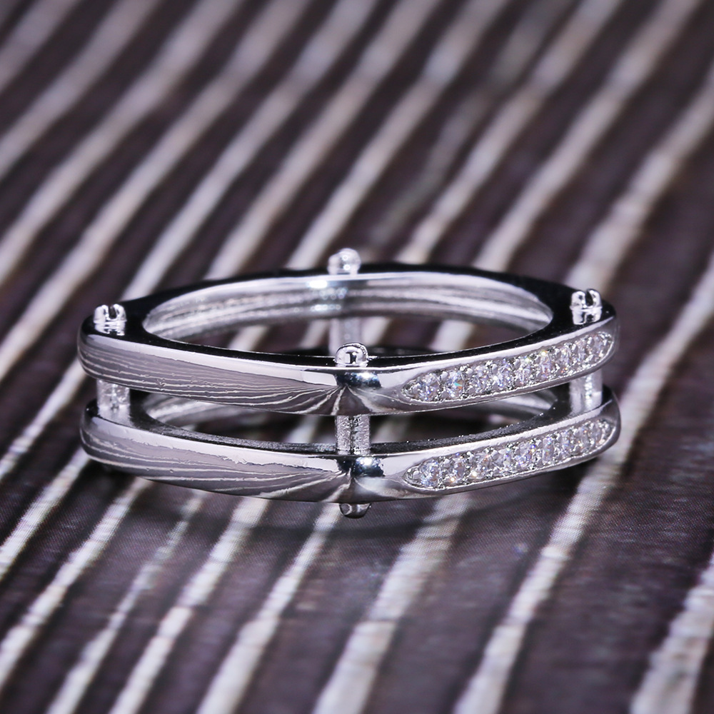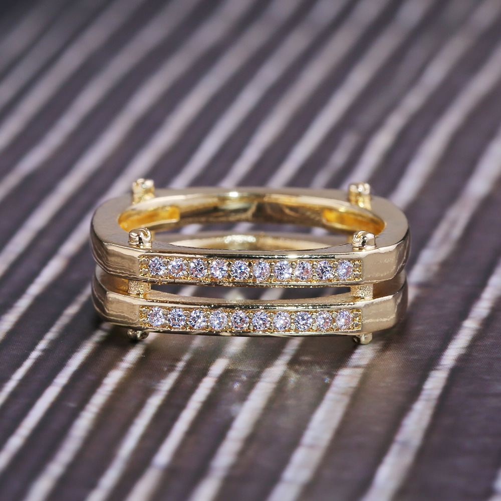 Classic four-claw imitation zircon micro-inlaid ring women's double row two-color twist arm ring engagement wedding ring women