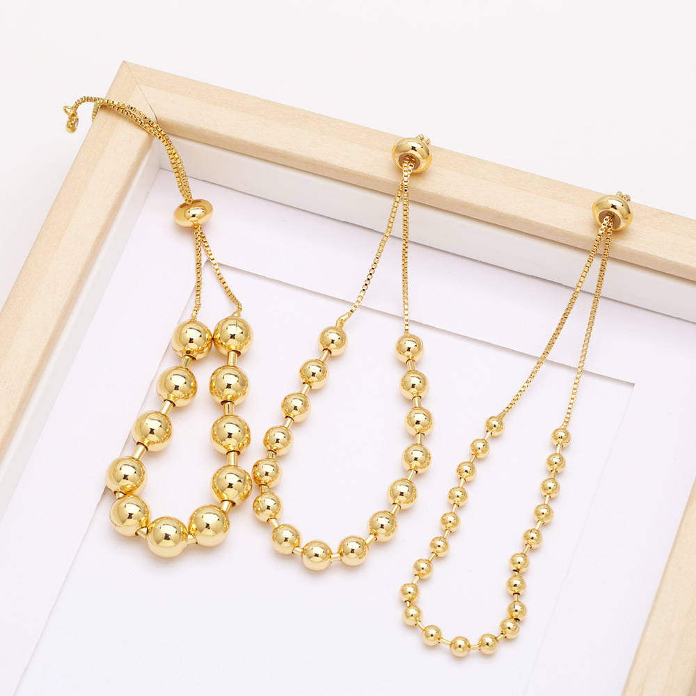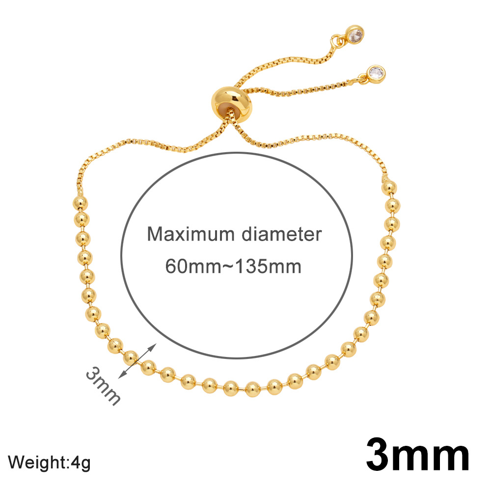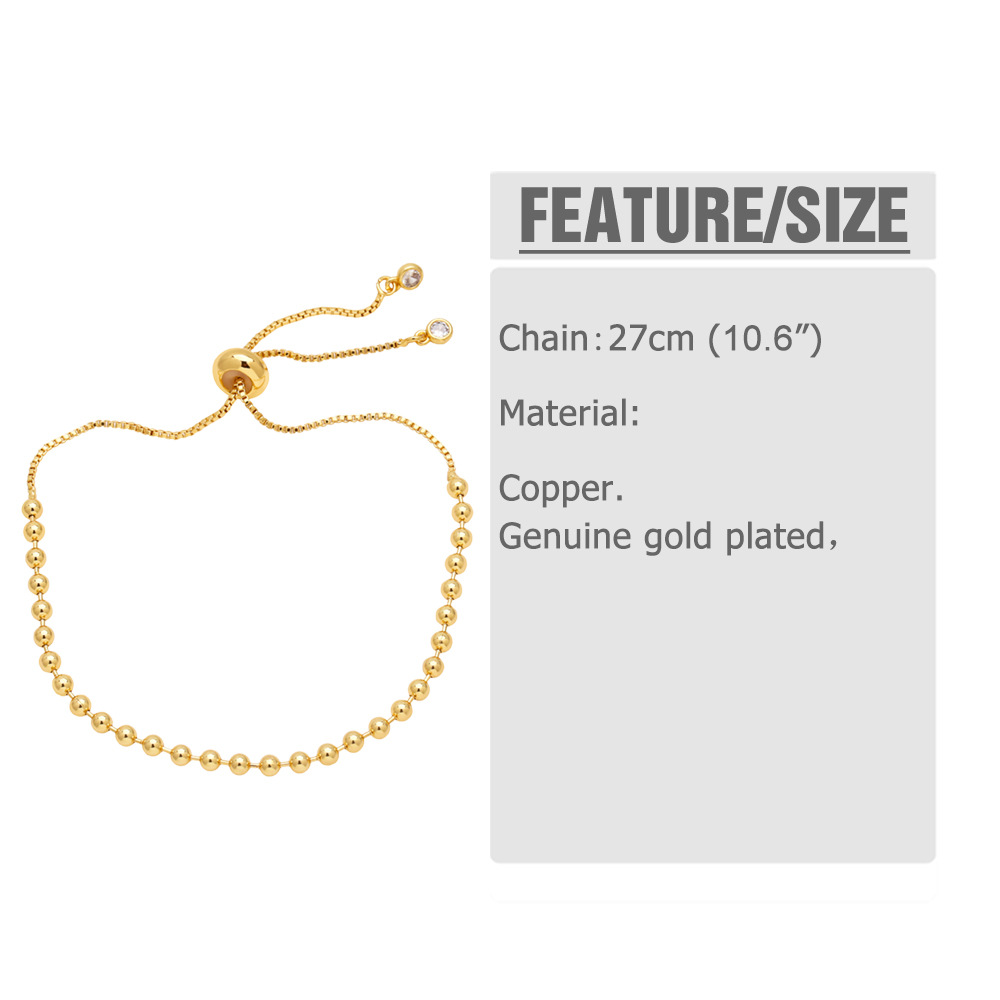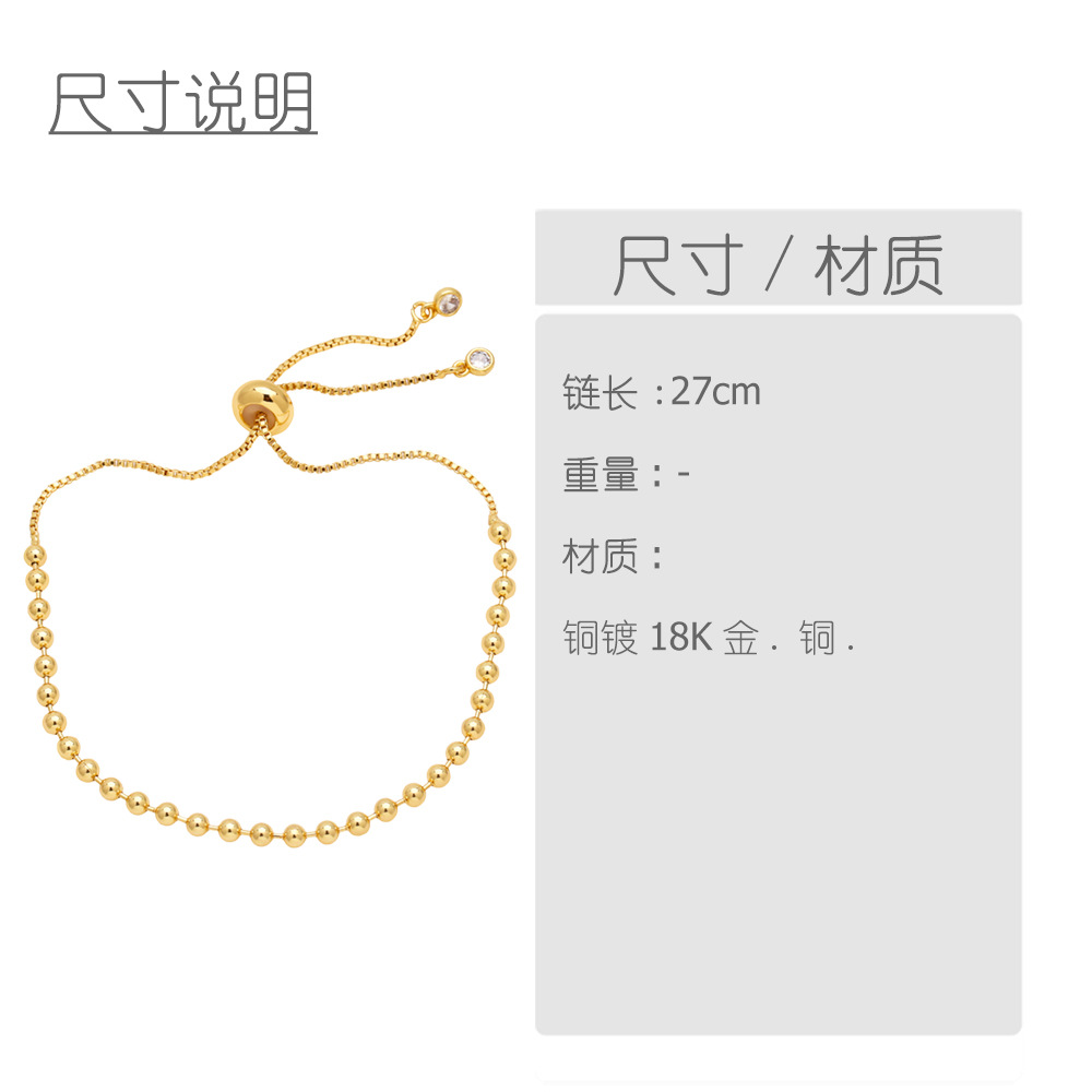 Popular all-match adjustable pull-out round bead bracelet copper 18K gold beaded bracelet bra70