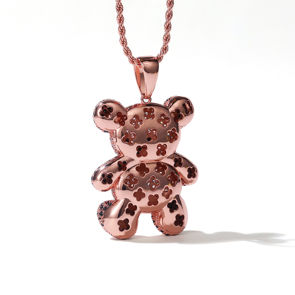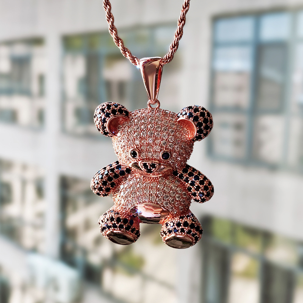 Popular cartoon bear pendant rose gold two-tone zircon men's and women's hip-hop necklace snake bone chain