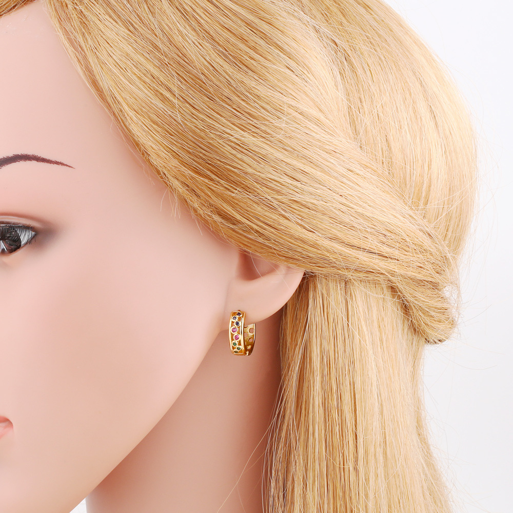 Popular colorful zircon earrings, elegant and versatile gold-plated high-end earrings, earrings, earrings, ert87