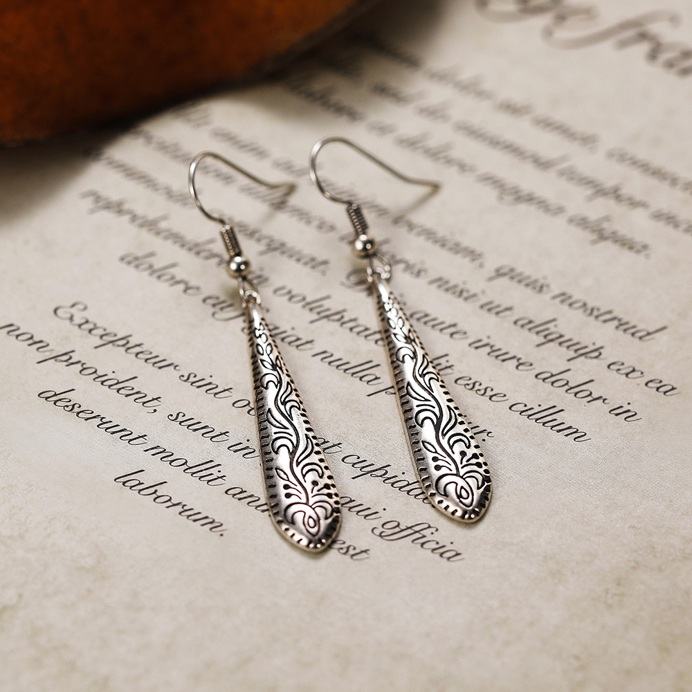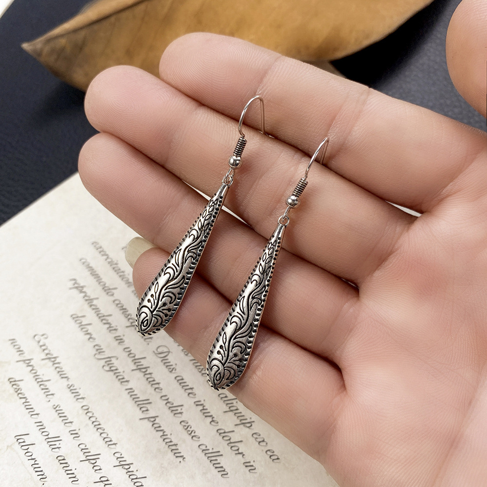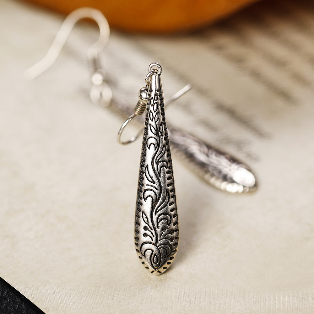 Popular earrings, Bohemian relief carved water drop earrings, ethnic style earrings, manufacturers and wholesale