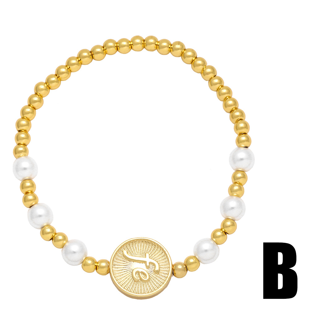 26 English letters bracelet female European and American copper beads pearl elastic bracelet fashion crown letter bracelet brf80