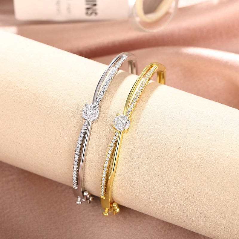 Popular European and American versatile bracelet for women, cross design, round zircon jewelry, elegant and exquisite niche jewelry