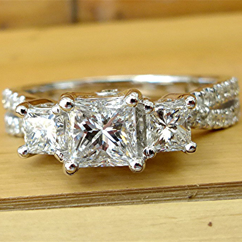 Hot selling new princess square ring European and American hot style inlaid zircon women's jewelry engagement proposal ring