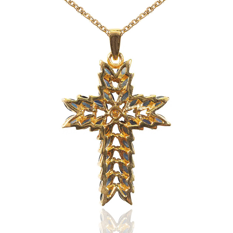 Popular exquisite retro marquise style blue crystal inlaid women's necklace European and American jewelry wholesale