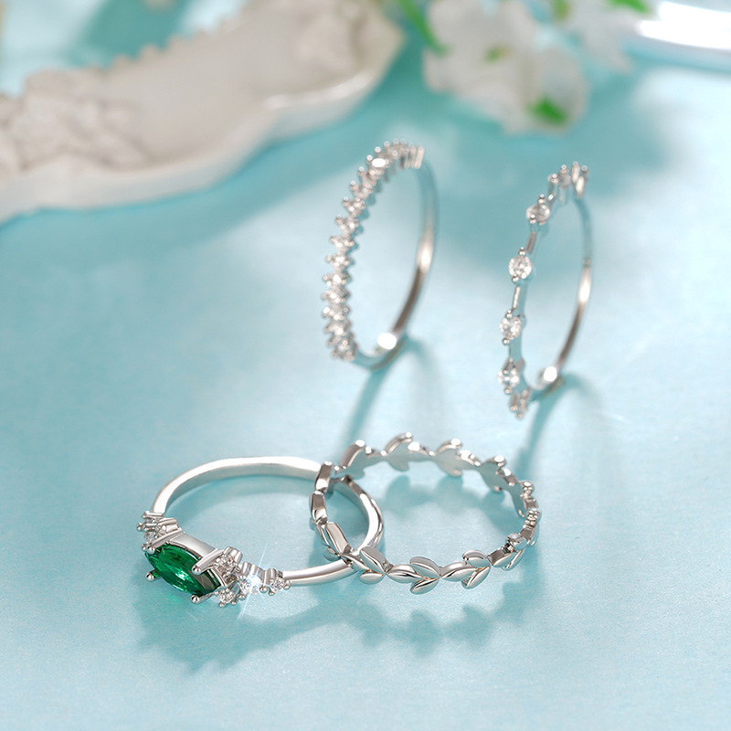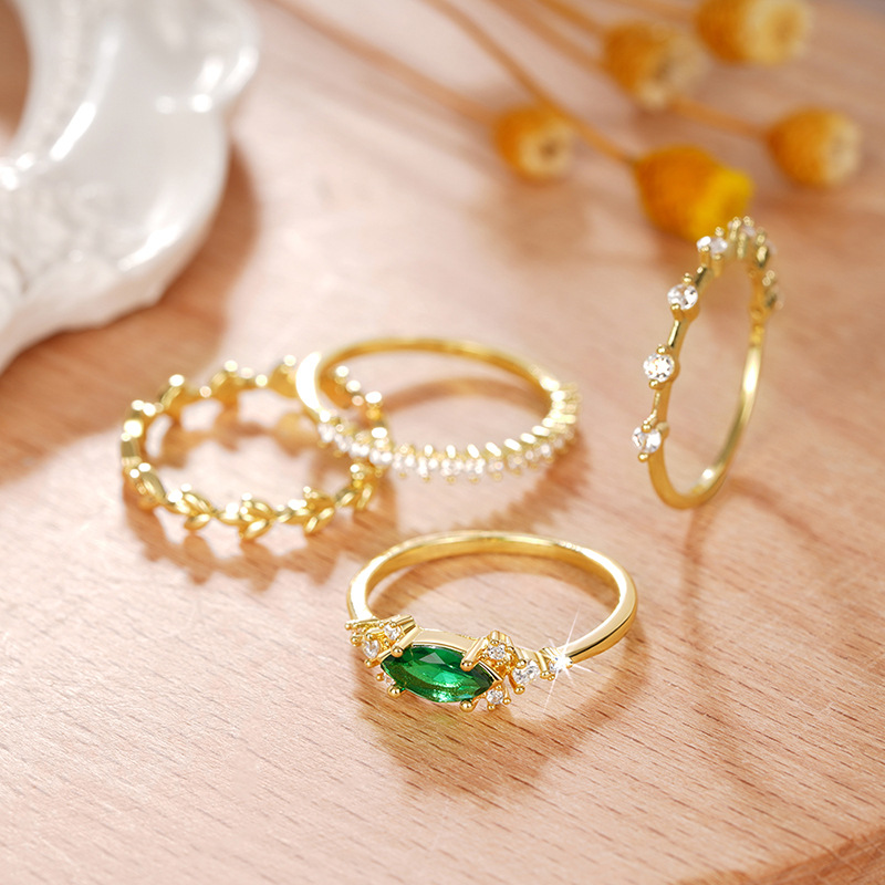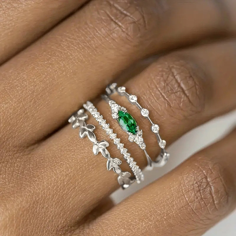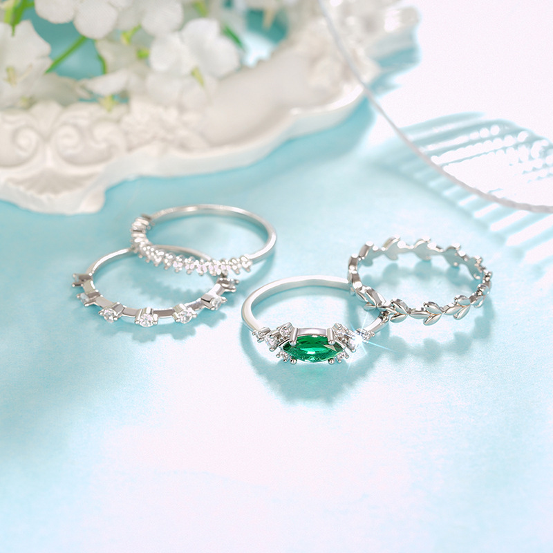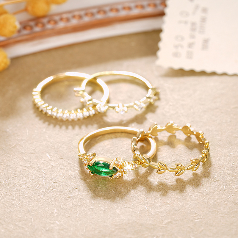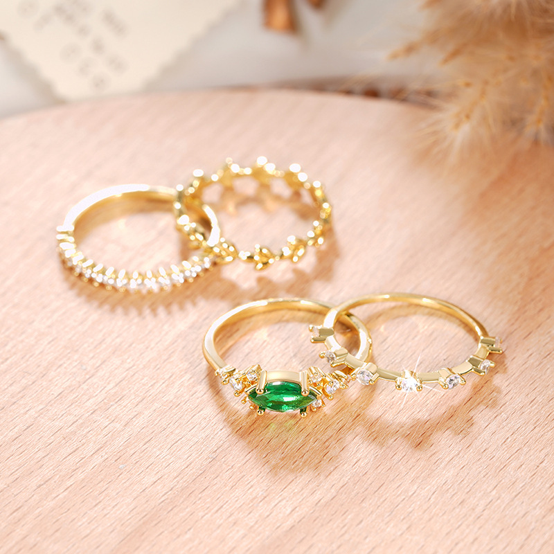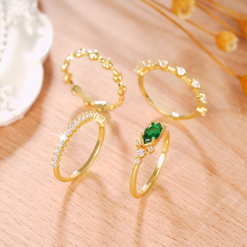 Popular ring set of four, stackable, geometric design rings, light luxury style, elegant and sweet jewelry