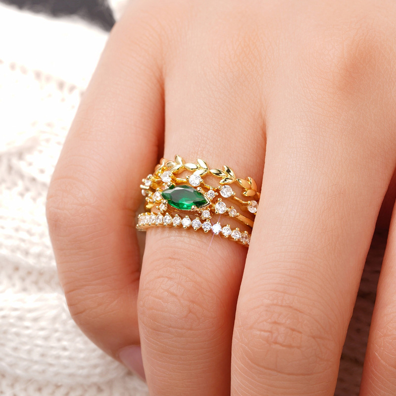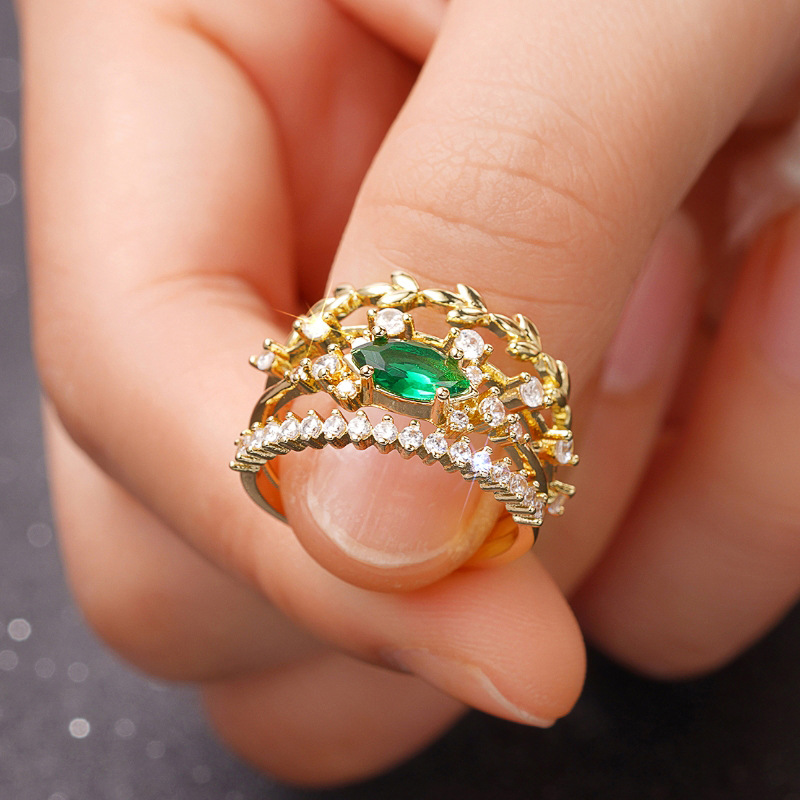 European and American luxury design ring fashionable temperament horse eye zircon ring multi-layer hollow design index finger ring