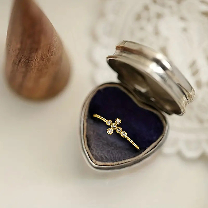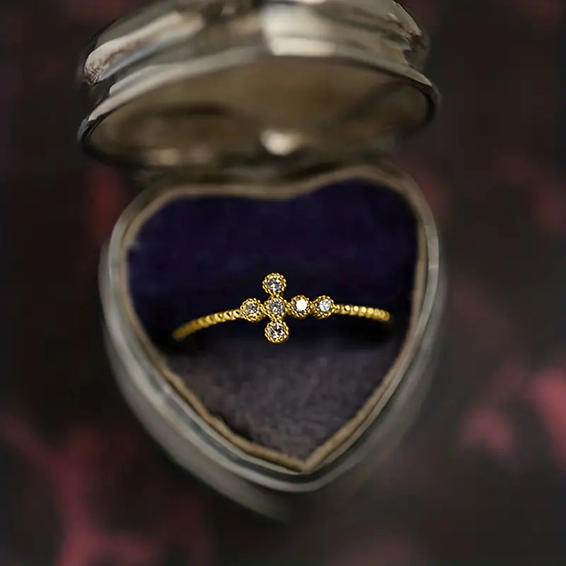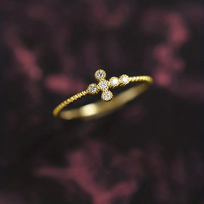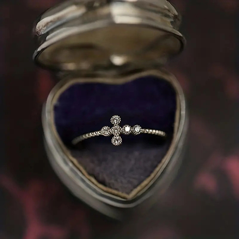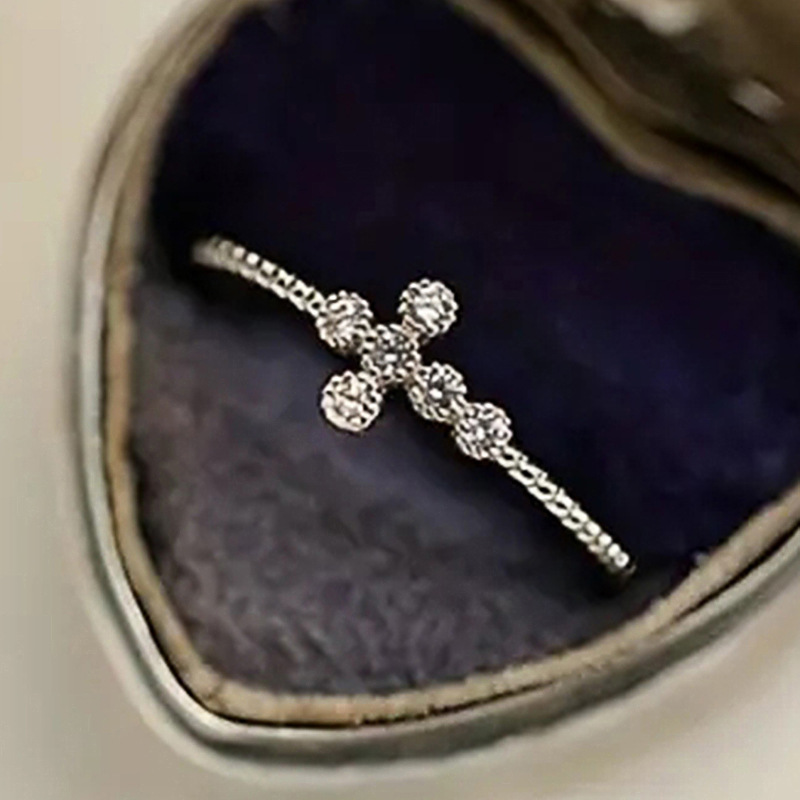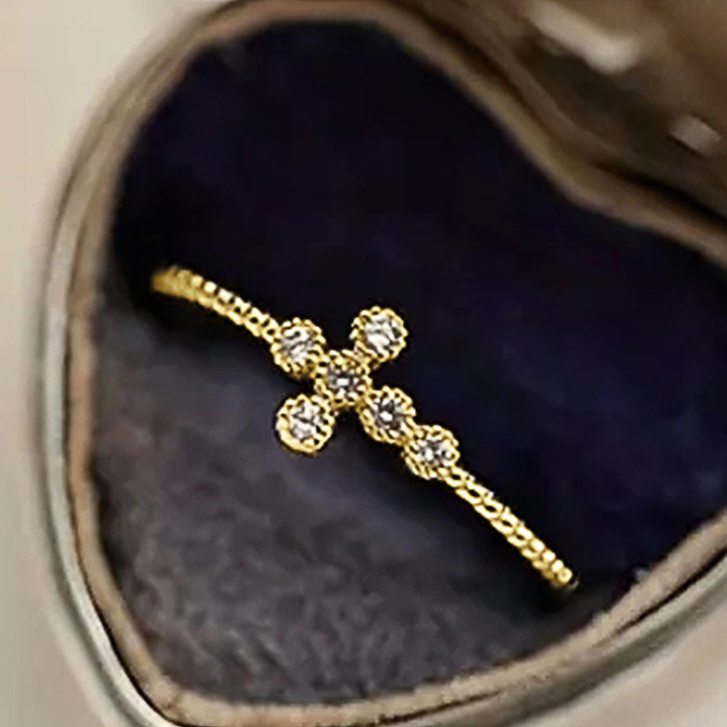 New zircon ring hollow cross four claws fashion design proposal wedding ring birthday gift ring
