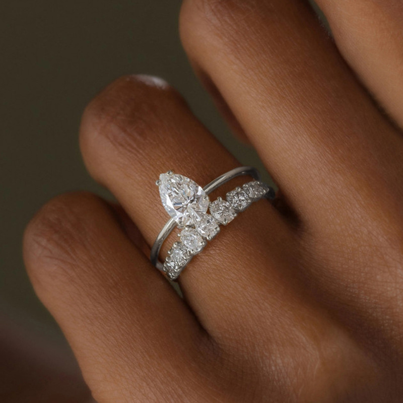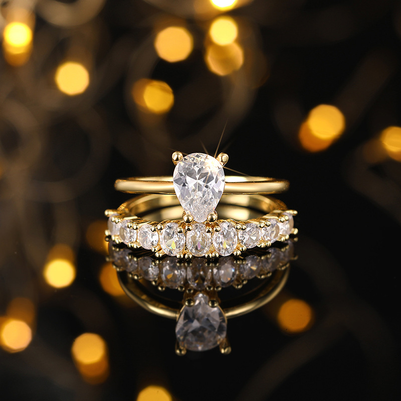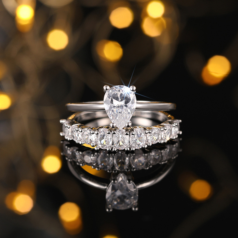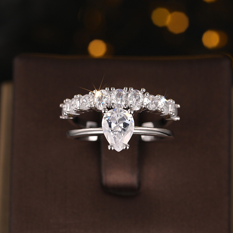 Popular teardrop-shaped zircon ring, fashionable and exquisite engagement ring, popular popular ring
