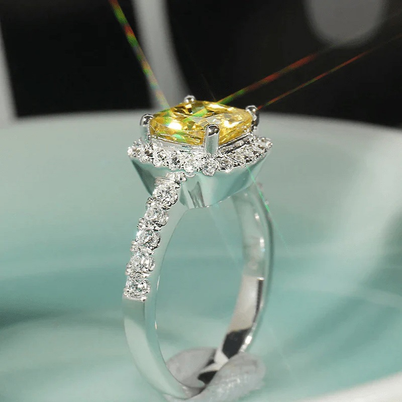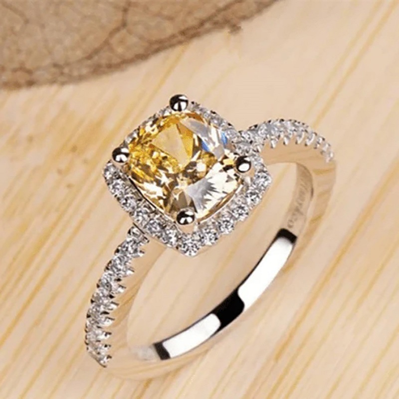 Princess fat square yellow ring female proposal light luxury color four claw ring French palace style accessories