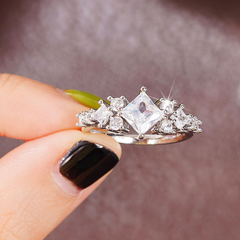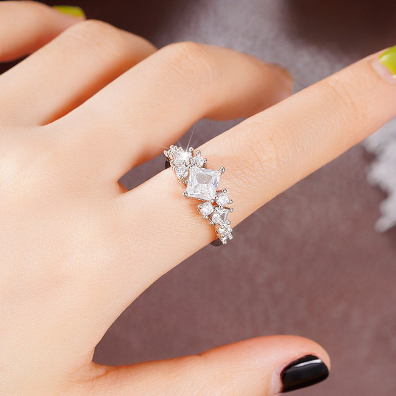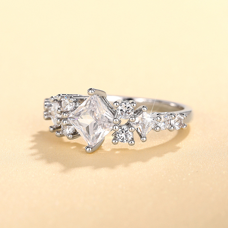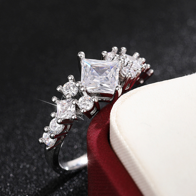 Hot selling new princess square ring European and American hot style inlaid zircon women's jewelry engagement proposal ring