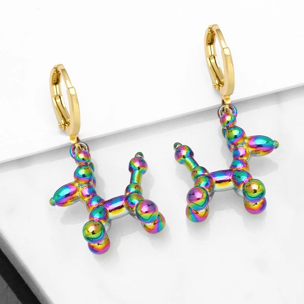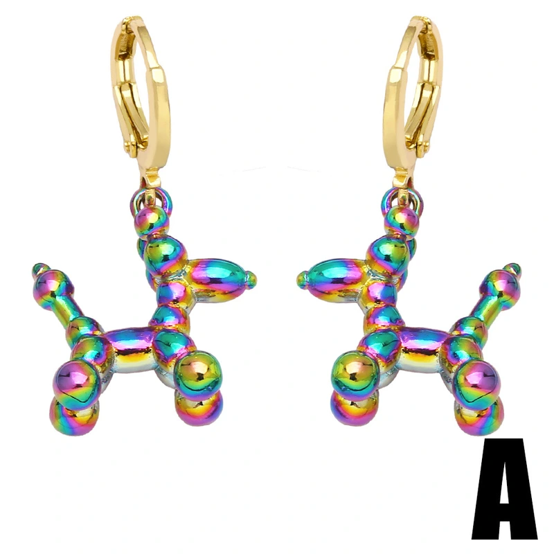 2023 novos brincos de balão coloridos para cachorro brincos femininos personalidade europeia e americana hip-hop estilo metal brincos de animais era042