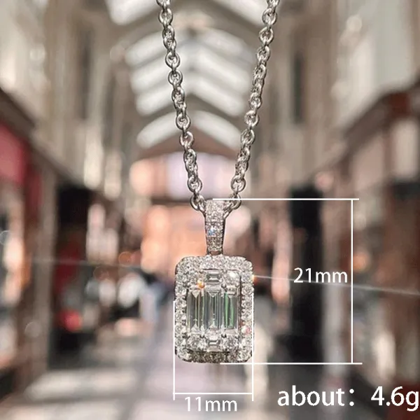 Colar de temperamento leve de luxo europeu e americano, design exclusivo, quatro garras, novo estilo, pendente, princesa, colar quadrado gordo de diamantes