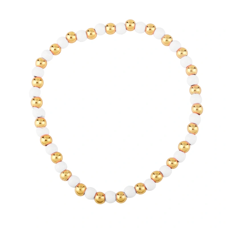 Pulseira feminina com 26 letras em inglês, contas de cobre europeias e americanas, pulseira elástica de pérolas, pulseira fashion com letras de coroa brf80