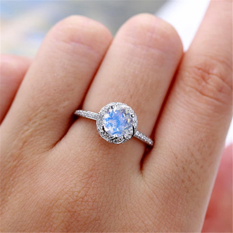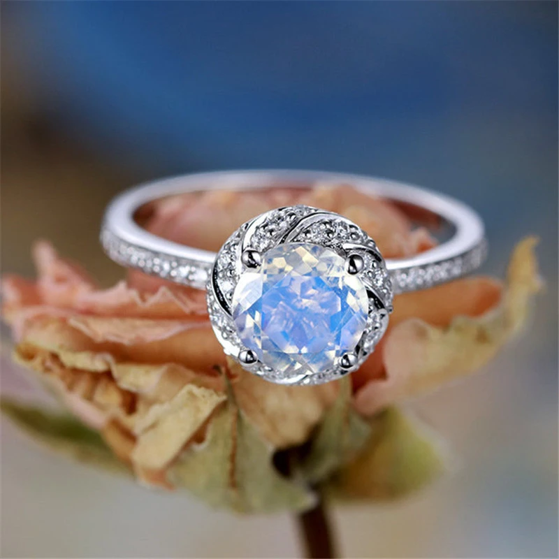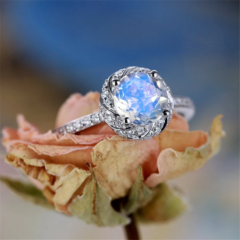 Acessórios europeus e americanos mais vendidos, anéis requintados de opala com diamantes microincrustados, joias femininas populares por atacado