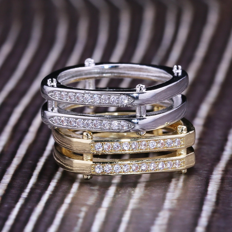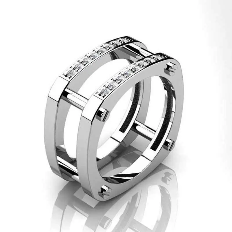 Anel de design de luxo europeu e americano, temperamento moderno, anel de zircónia olho de cavalo, design oco multicamadas, anel para dedo indicador