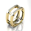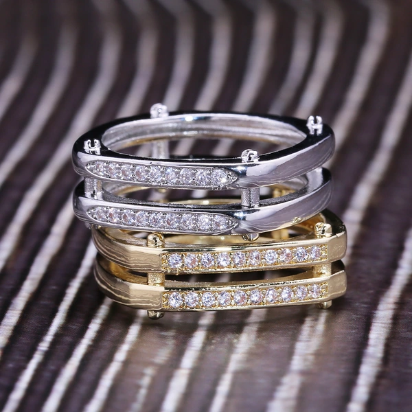 Anel clássico de quatro garras com microincrustações de zircónias sintéticas, anel de braço torcido de duas cores com fileira dupla para mulher, anel de noivado e casamento