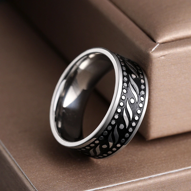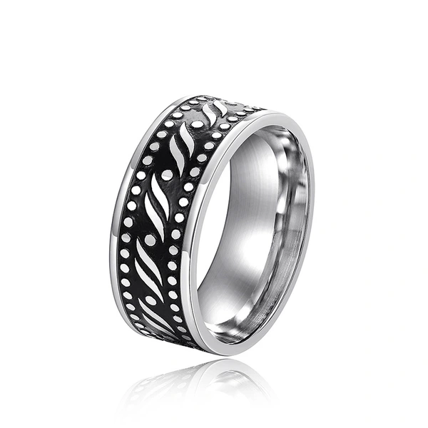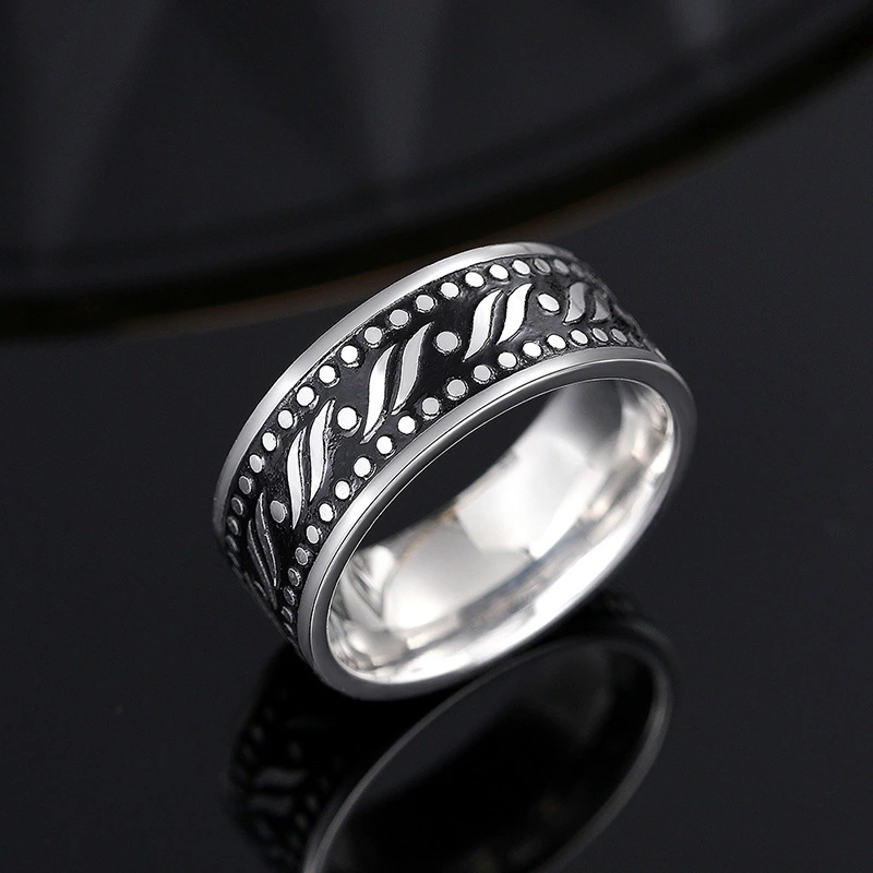 Anel clássico retro gravado com flor auspiciosa, versão clássica larga, anel miao, estilo étnico yunnan, joias para homem e mulher