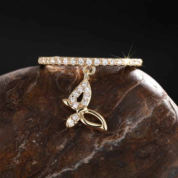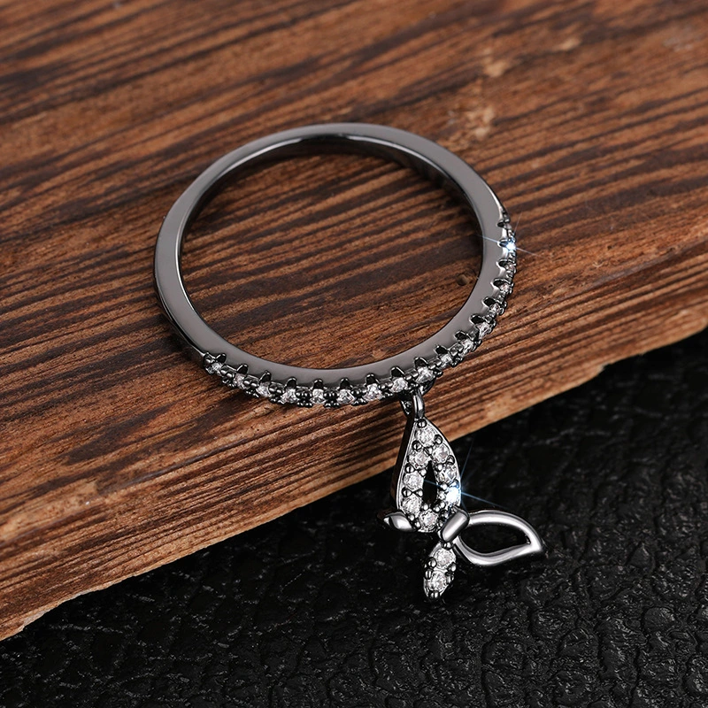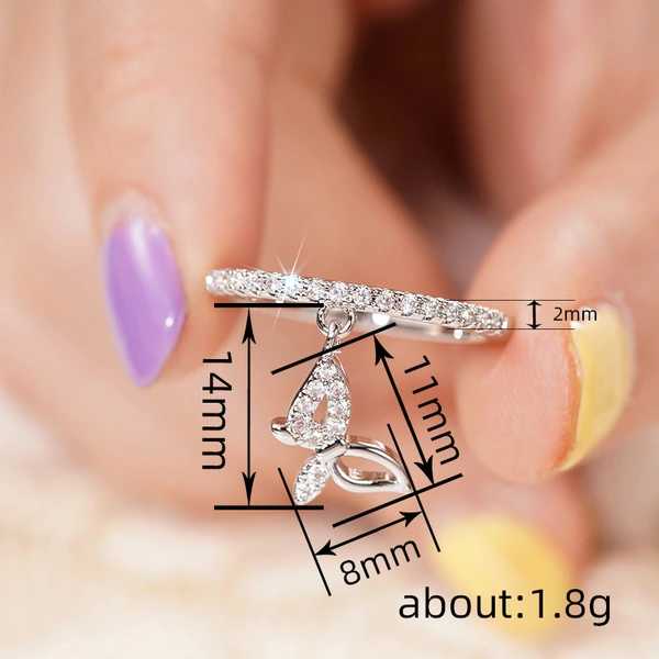 Anel com pendente de borboleta suave japonês e coreano para mulher, incrustado com zircónias, anel requintado, estilo floresta popular, anel único