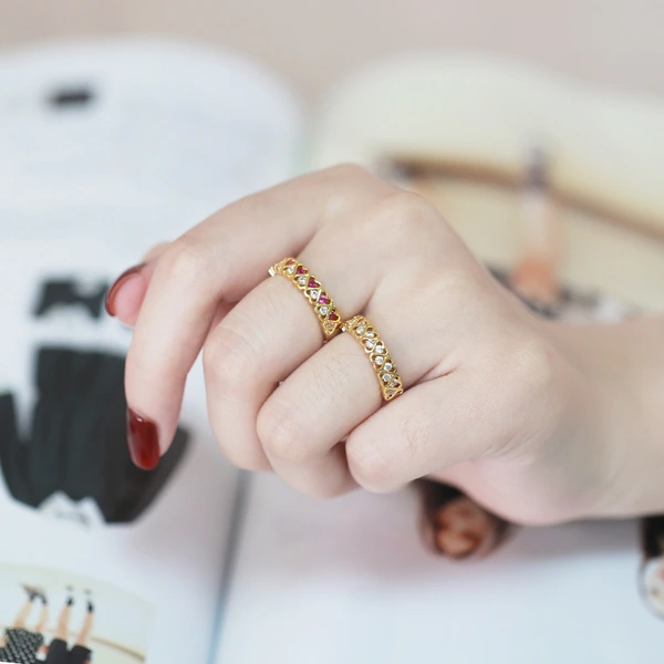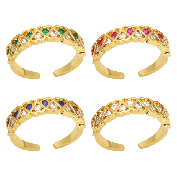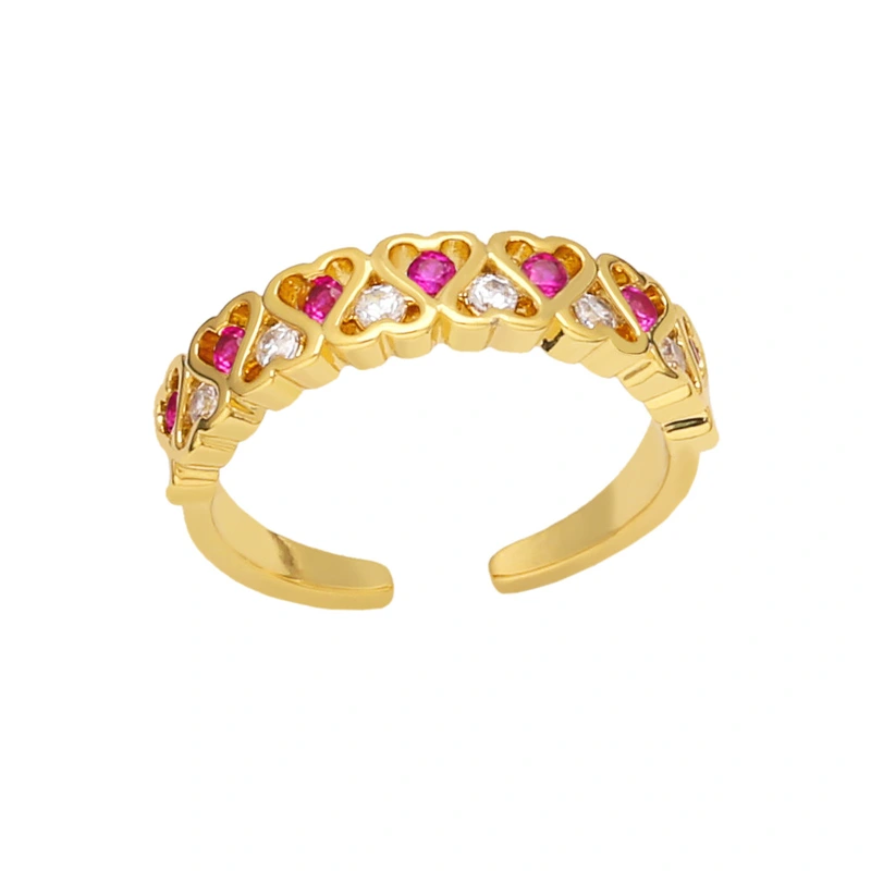 Anel de amor feminino com duas fileiras de diamantes, anel aberto em formato de coração, riq20, novo anel europeu e americano