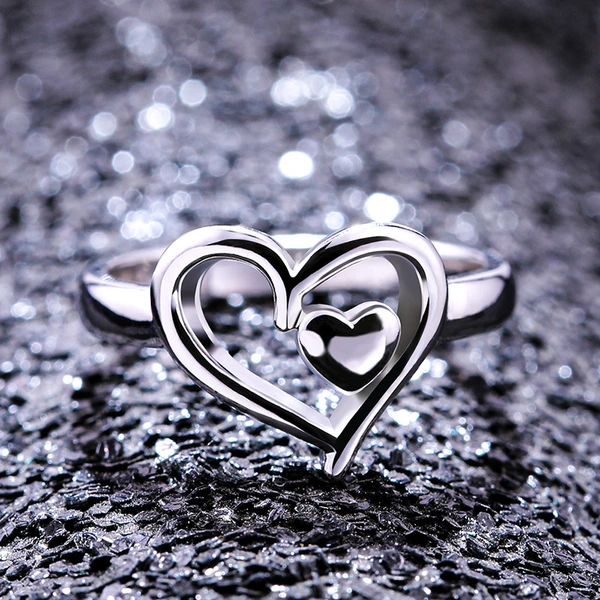 Anel de coração de pêssego estilo coreano, novo e mais vendido, anel em forma de coração duplo, anel mindinho, anel mais vendido