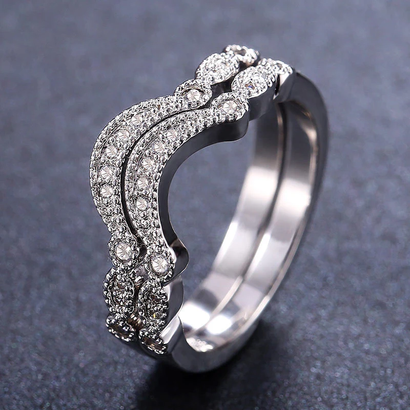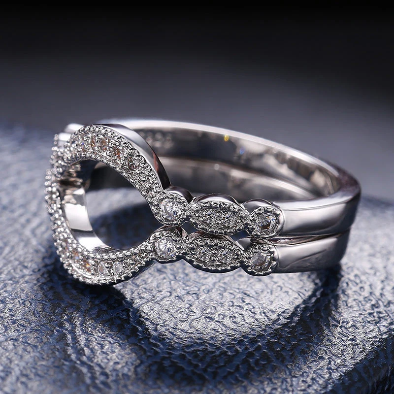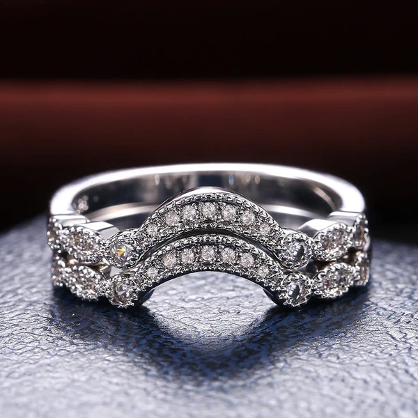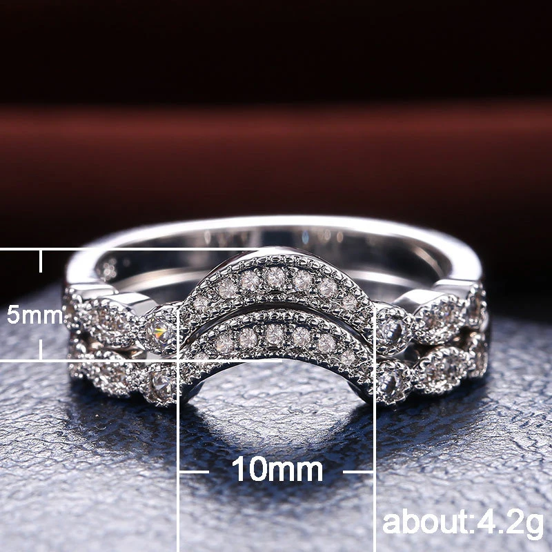 Anel clássico de quatro garras com microincrustações de zircónias sintéticas, anel de braço torcido de duas cores com fileira dupla para mulher, anel de noivado e casamento
