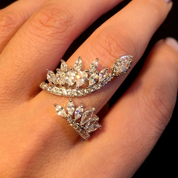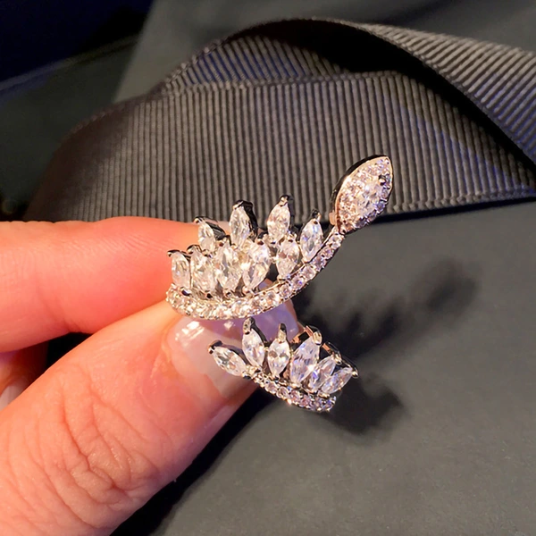 Anel de diamante de imitação europeu e americano, novo, moderno, de alta qualidade, com abertura ajustável, joalharia feminina