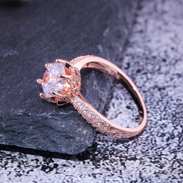 Anel de casamento clássico com seis garras de zircónia, estilo celebridade, microincrustado, leve, luxuoso, estilo europeu e americano