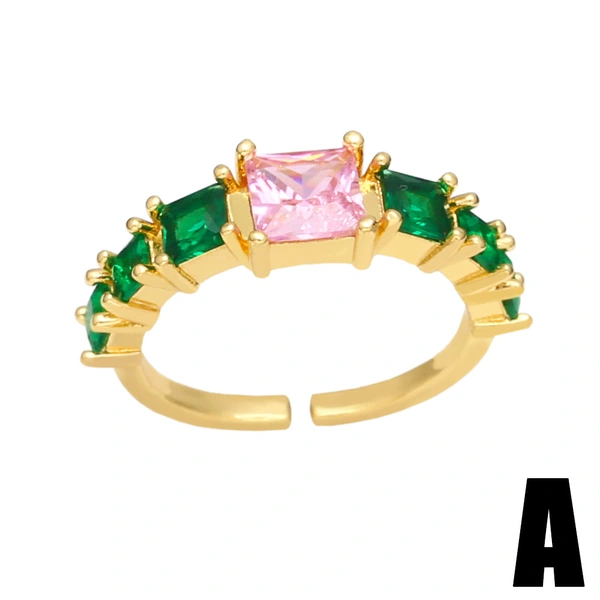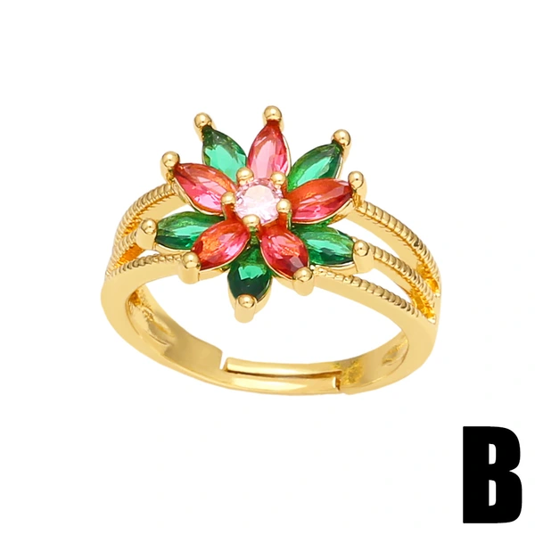 anel de nicho europeu e americano com design de flor e microincrustações de zircônia colorida, anel ajustável aberto riq98