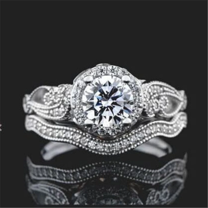 Anel de noivado europeu e americano com micro incrustações de zircónia, venda por grosso de joias mais vendido, anel de casal com dupla camada