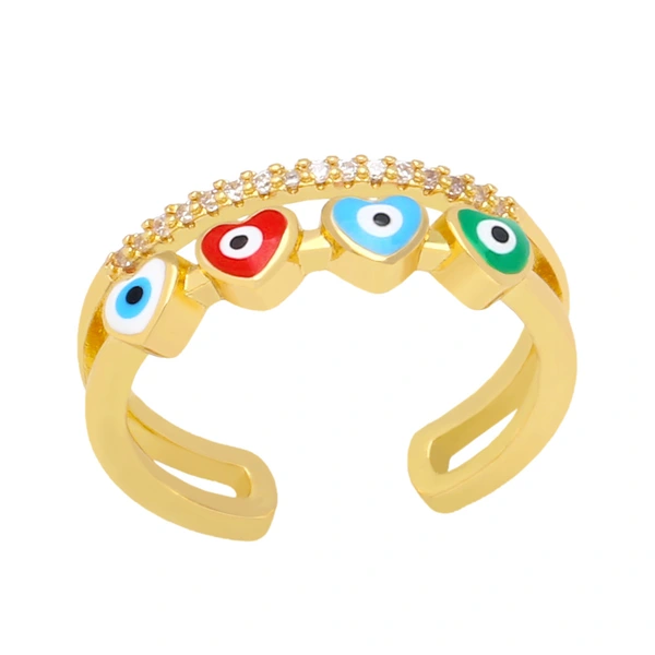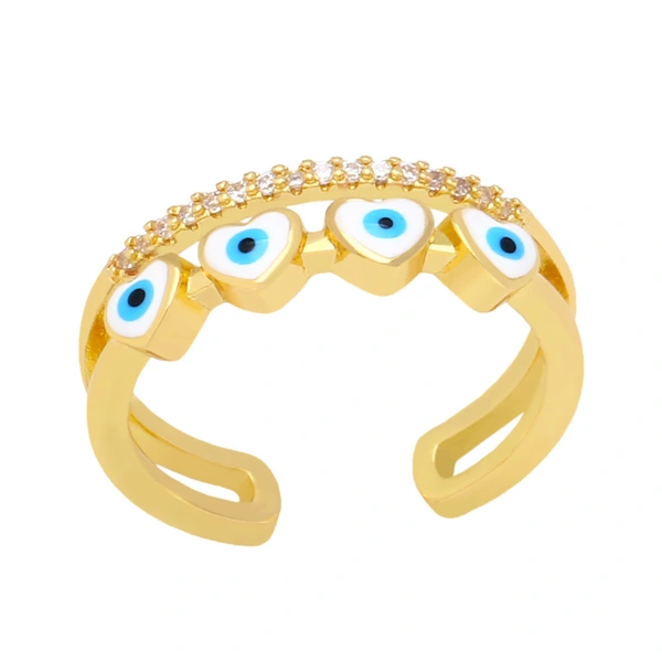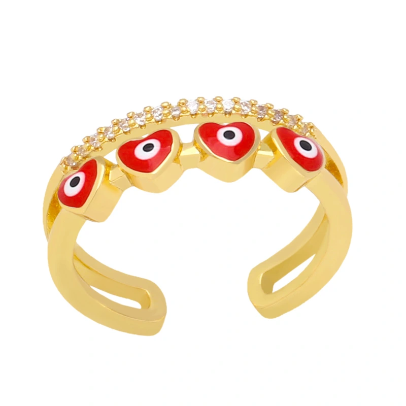 Anel de olho de amor europeu e americano de dupla camada, moda simples, em forma de coração, olho de diabo, anel de dedo indicador feminino riq30