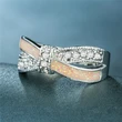 Anel clássico de quatro garras com microincrustações de zircónias sintéticas, anel de braço torcido de duas cores com fileira dupla para mulher, anel de noivado e casamento