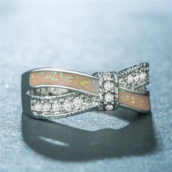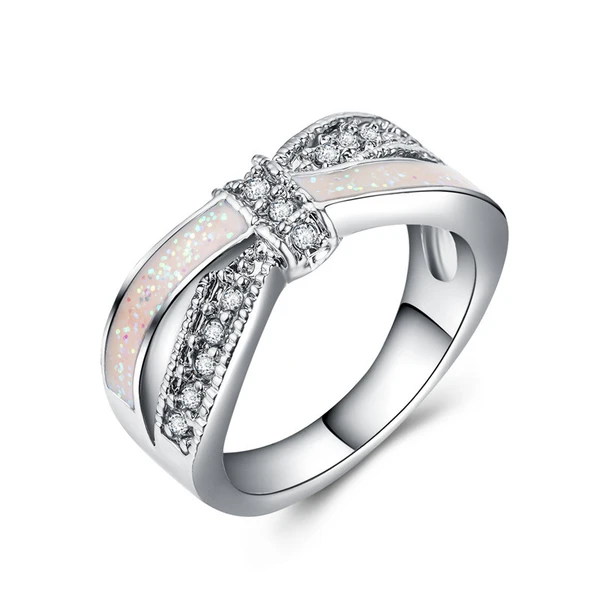 Anel de opala em formato de arco criativo e moderno para mulher, amor entrelaçado, strass microincrustados, joias para as mãos