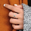 Anel de design de luxo europeu e americano, temperamento moderno, anel de zircónia olho de cavalo, design oco multicamadas, anel para dedo indicador