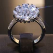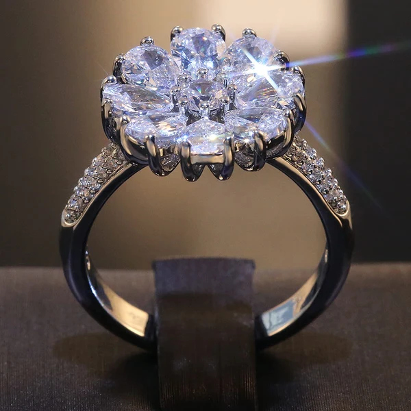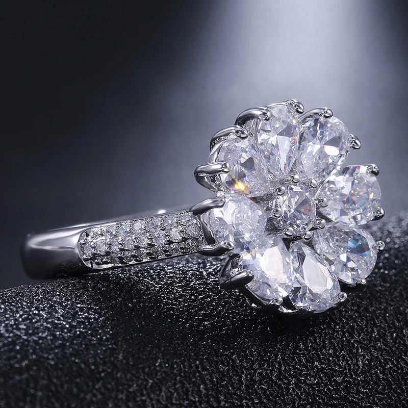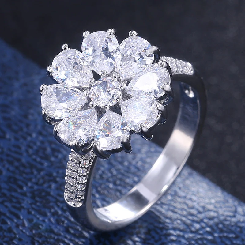 Anel de zircónia cúbica com flores e joias da moda, feminino, europeu e americano, charme requintado, joias para mulheres, todas as combinações