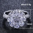 Anel de casamento clássico com seis garras de zircónia, estilo celebridade, microincrustado, leve, luxuoso, estilo europeu e americano