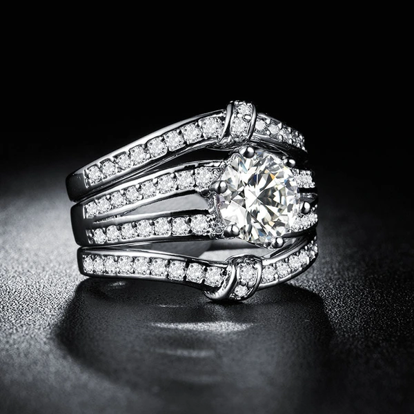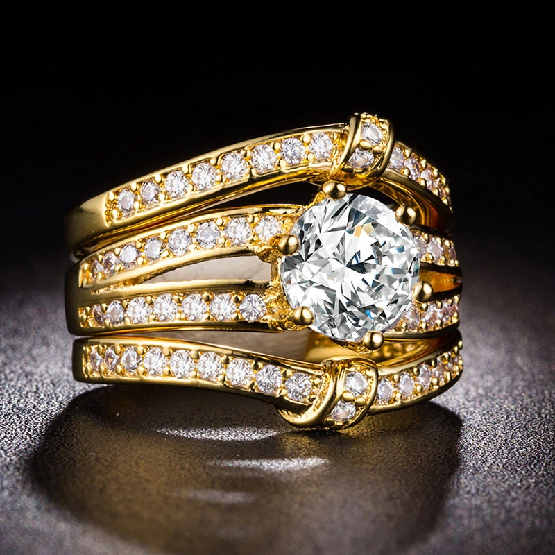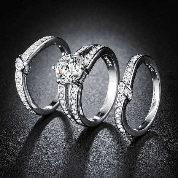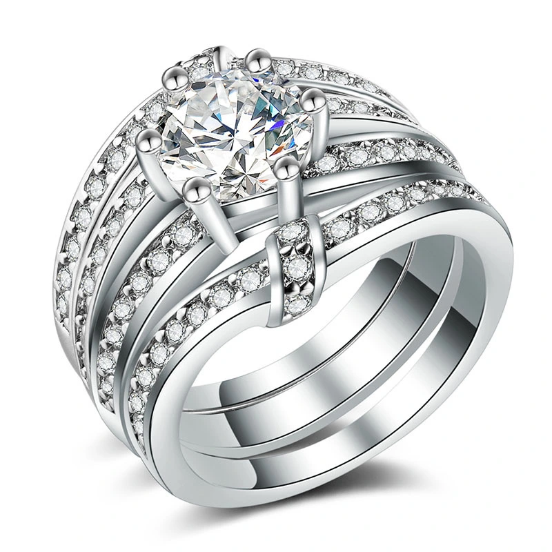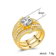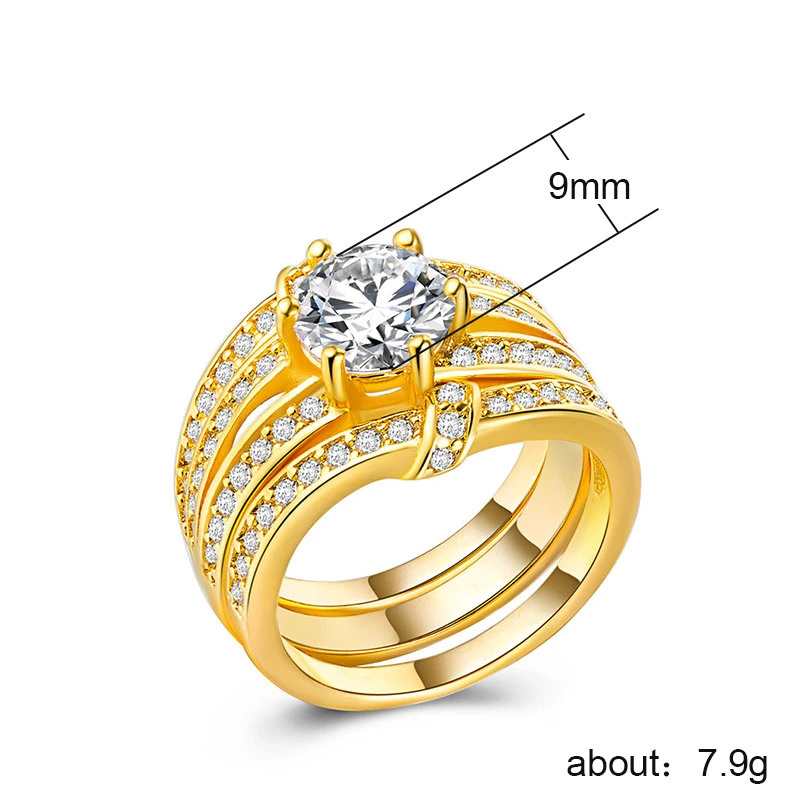 Anel de zircónia mais vendido na Europa e nos Estados Unidos, banhado a prata, ouro de 18 quilates, exagerado, anel de três peças, venda por grosso de fábrica