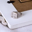 Anel clássico retro gravado com flor auspiciosa, versão clássica larga, anel miao, estilo étnico yunnan, joias para homem e mulher