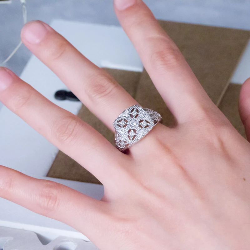 Anel de zircónia microincrustada vazada da moda mais vendido, anel de joalharia feminino requintado
