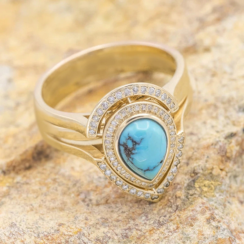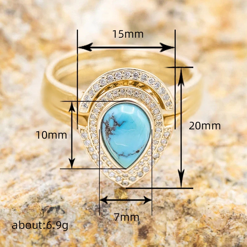anel estilo boémio moda gota de água anel retro anel de temperamento popular geométrico literário