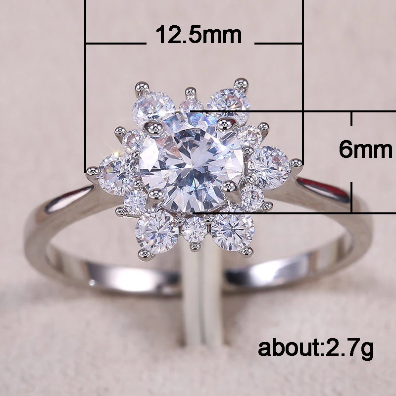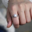 Anel de casamento clássico com seis garras de zircónia, estilo celebridade, microincrustado, leve, luxuoso, estilo europeu e americano